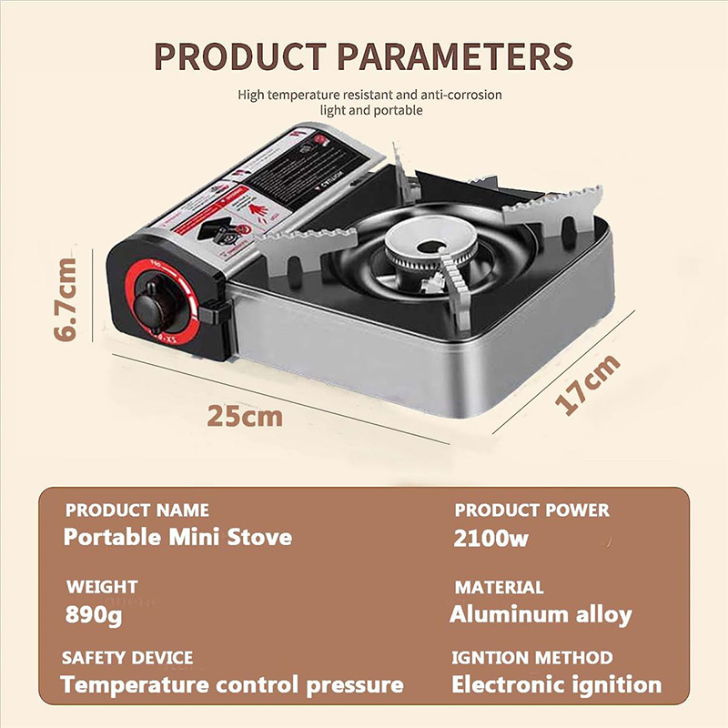 اجاق گاز کمپینگ مدل MINI مناسب برای استفاده در کمپینگ و فضای باز است و طراحی فشرده و سبک آن حمل و نقل را آسان میکند. این محصول دارای اهرم تنظیم شعله و فندک داخلی برای روشن شدن سریع است. با توجه به ساختار از آلومینیوم ضد زنگ، از دوام و مقاومت بالایی برخوردار میباشد.